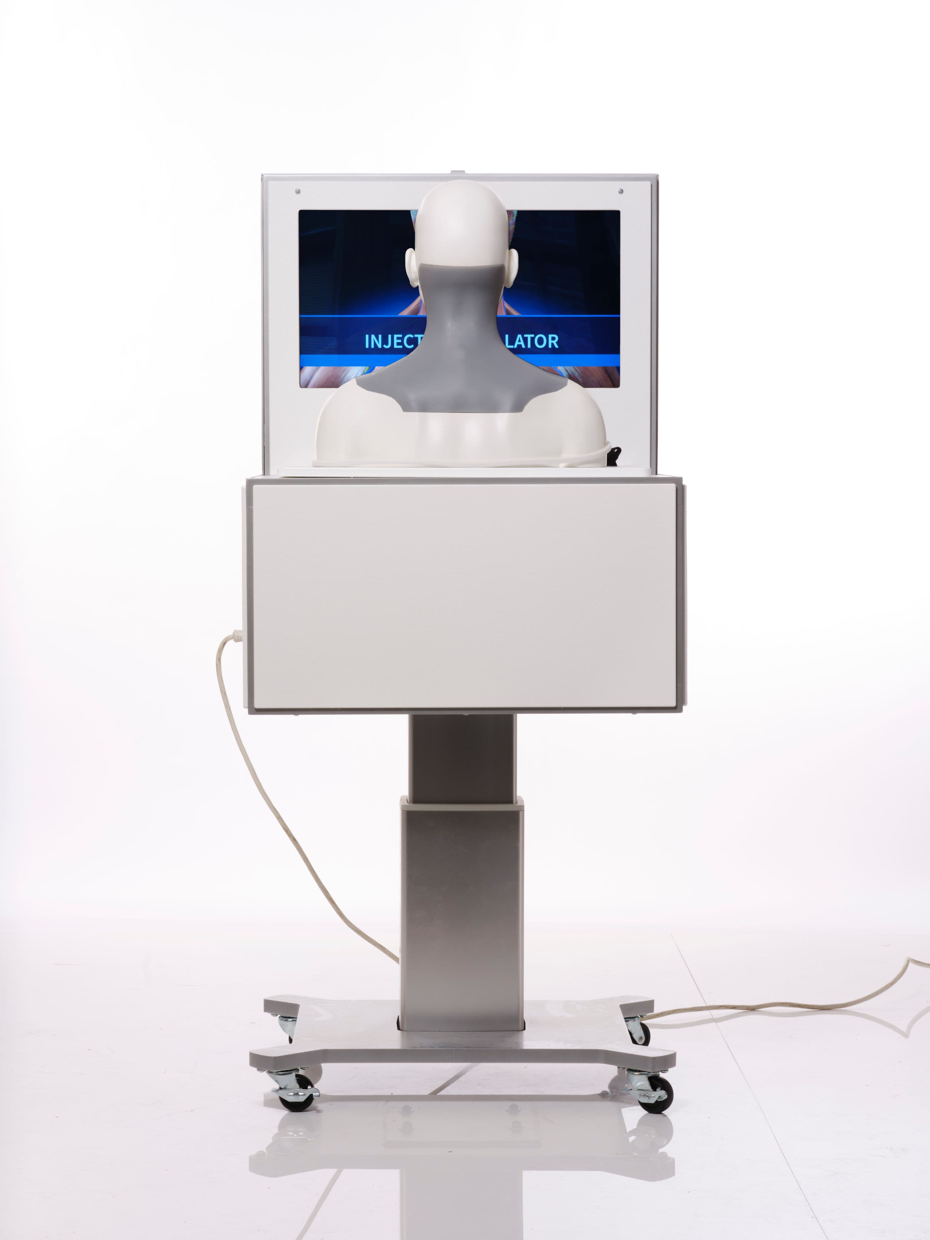 These simulators help physicians and other medical staff improve their accuracy, consistency, and confidence when administering Ipsen’s injectable medications. Users inject a life-sized mannequin bust with a custom syringe that precisely tracks positioning and dosage. An adjacent digital display shows a 3-D view of the musculature, the syringe’s placement and depth, and can alert practitioners when they’ve hit their target or entered a danger zone.